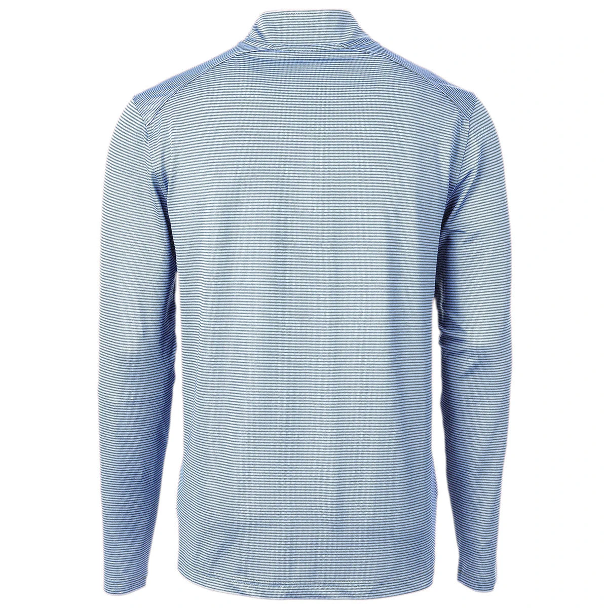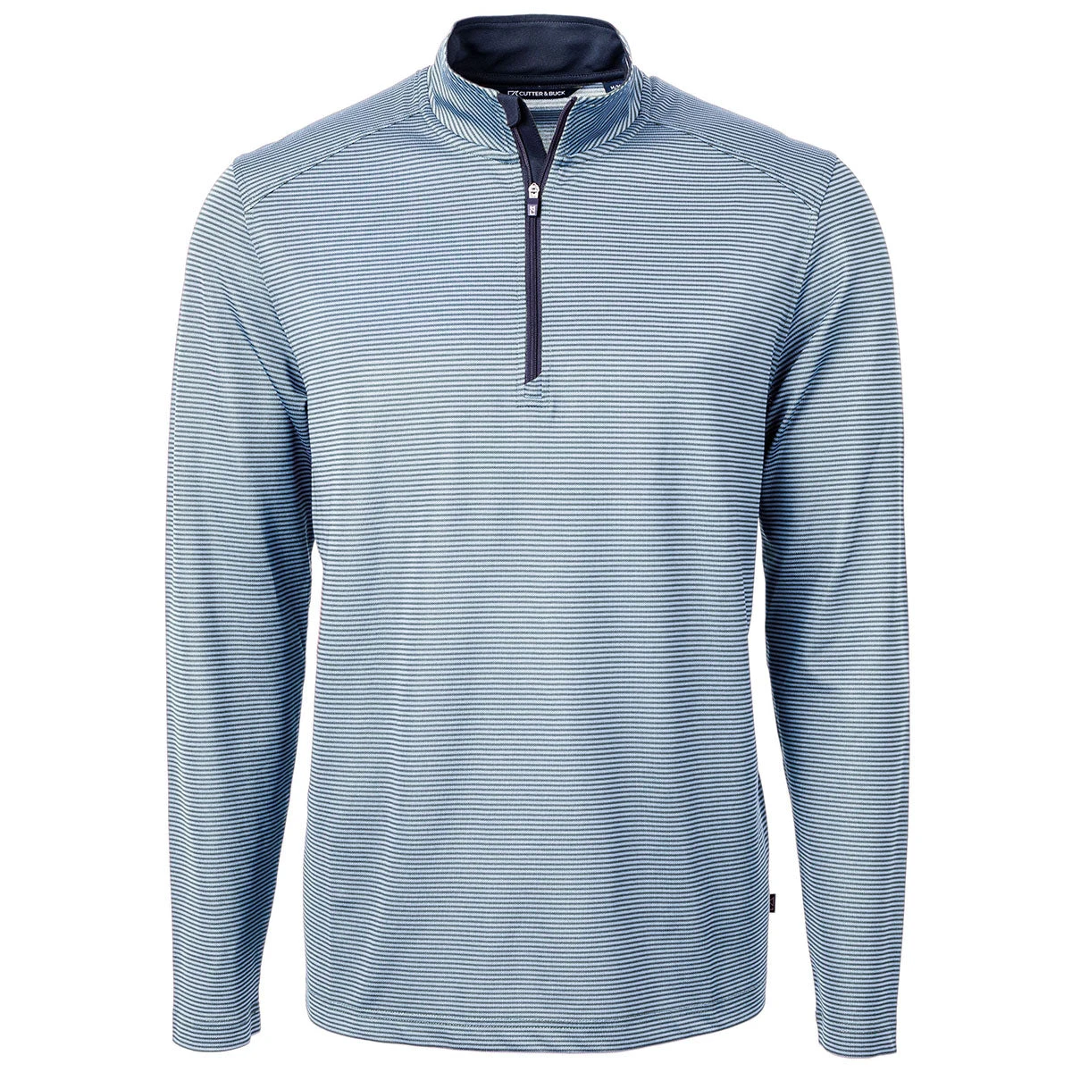 Cutter & Buck Men’s Atlas/Navy Blue Virtue Eco Pique Micro Strip Recycled Quarter Zip with an embroidered logo is a must-have for those who enjoy the great outdoors. The sleek, long-sleeve quarter zip has a zippered closure that is easy to layer on those chilly days. Ideal for walking a dog or enjoying a weekend hike, this versatile quarter zip is ready for adventure. Place an order today.
