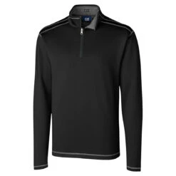 Get two men’s tops for the price of one! Via heat transfer you can have your custom logo on both sides of this Cutter & Buck Men’s Black DryTec Evergreen Reversible Half-Zip. It is bonded with double face stretch fabric. Any color you choose will reverse to a heather grey. The front has a half zipper and there is contrast stitching on both sides. In addition, the label can be removed. While this is a double fabric it still has the famous Cutter & Buck’s DryTec fabric that keeps the body cool and comfortable with its moisture wicking. This is a new style that will not be seen in other catalogs soon.
