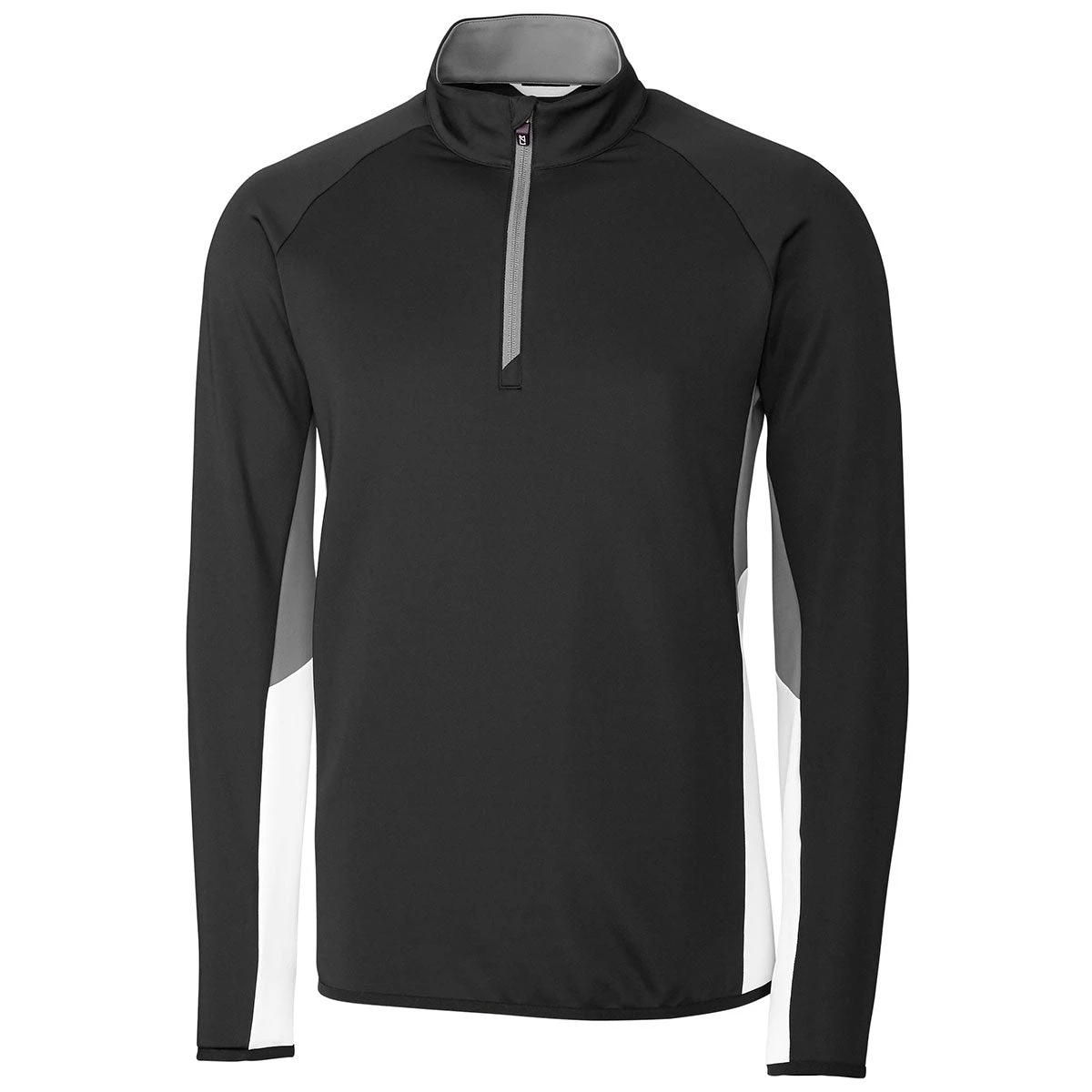 With the Cutter & Buck Men’s Black Traverse Colorblock Half Zip shirt, you have a custom embroidery logo option to hand out to employees and company clients alike. Available in vibrant and unique colors, you can pick the color option that you like best and that works well with your company logo. When in doubt, choose a few different color options. Features of this must-have shirt include a 90% polyester/10% spandex blend material, interlock fabric, CB DryTec UPF 50+ sun protection, mock neck half zip style, raglan armholes, cuffed sleeves, and straight hem.