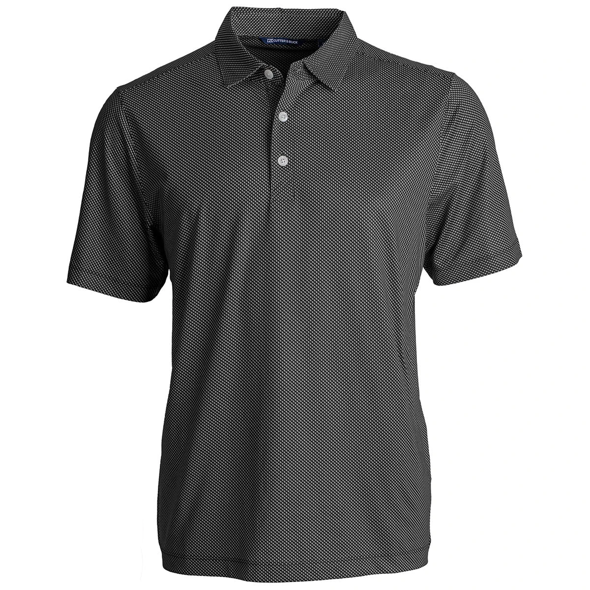The classic polo now comes in a subtle print and is made with sustainable material. Cutter & Buck Men’s Black/White Pike Eco Symmetry Print Stretch Recycled Tall Polo provides style and comfortable all-day wear with UV protection and moisture-wicking abilities. Get the protection you need for a sunny day outside or laid-back luxury in the office.Â