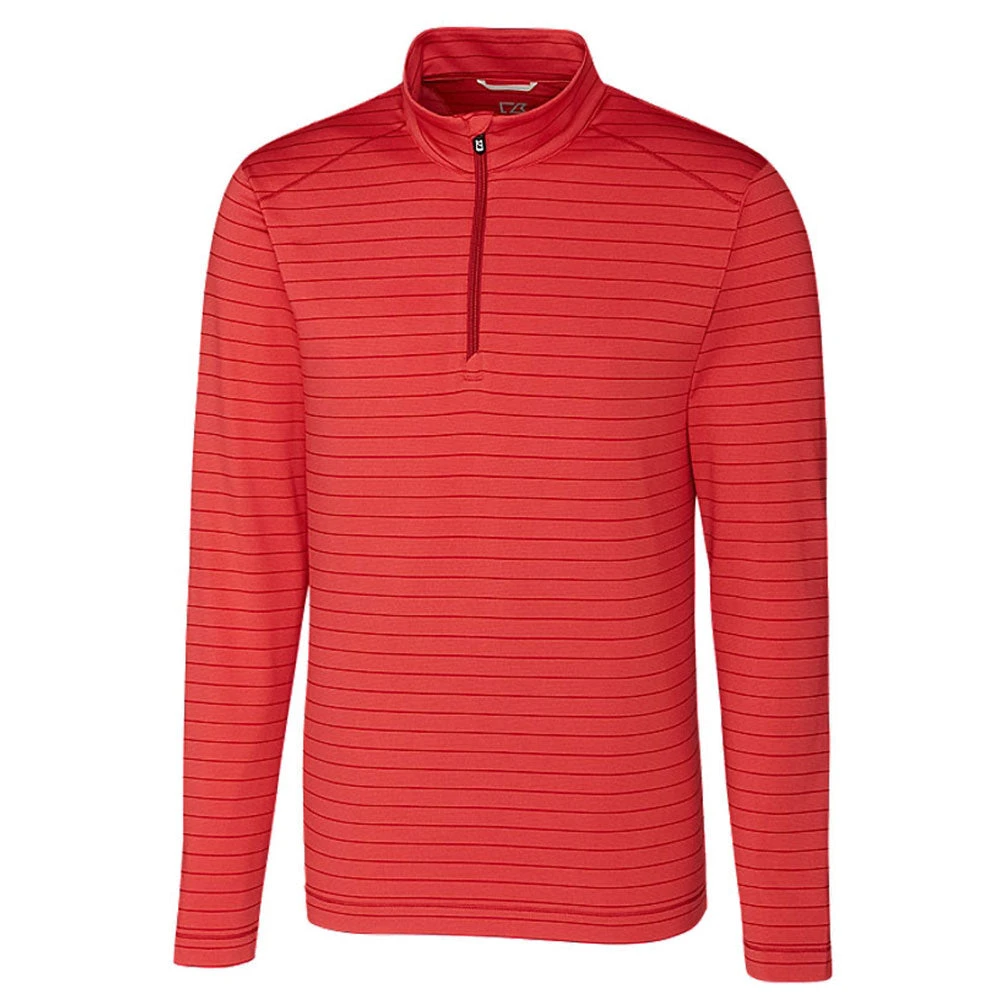 The consistent stripe pattern on the Cutter & Buck Men’s Cardinal Red Heather Tall DryTec Holman Stripe Half-Zip adds a nice design element that will complement your custom logo well. The stripes include black lines along all parts of the outfit. Look as the cuffs and hem line include a tighter layout with a thicker tone to create a good fit. The heat transfer feature on the back part of the neck keeps people cool in even the hottest conditions, thus creating a good body for wear while on the golf course, on the running track, or anywhere else one wants to be during the fall and winter seasons. No matter the location, these half-zips are the perfect way to market your company outside of the office.
