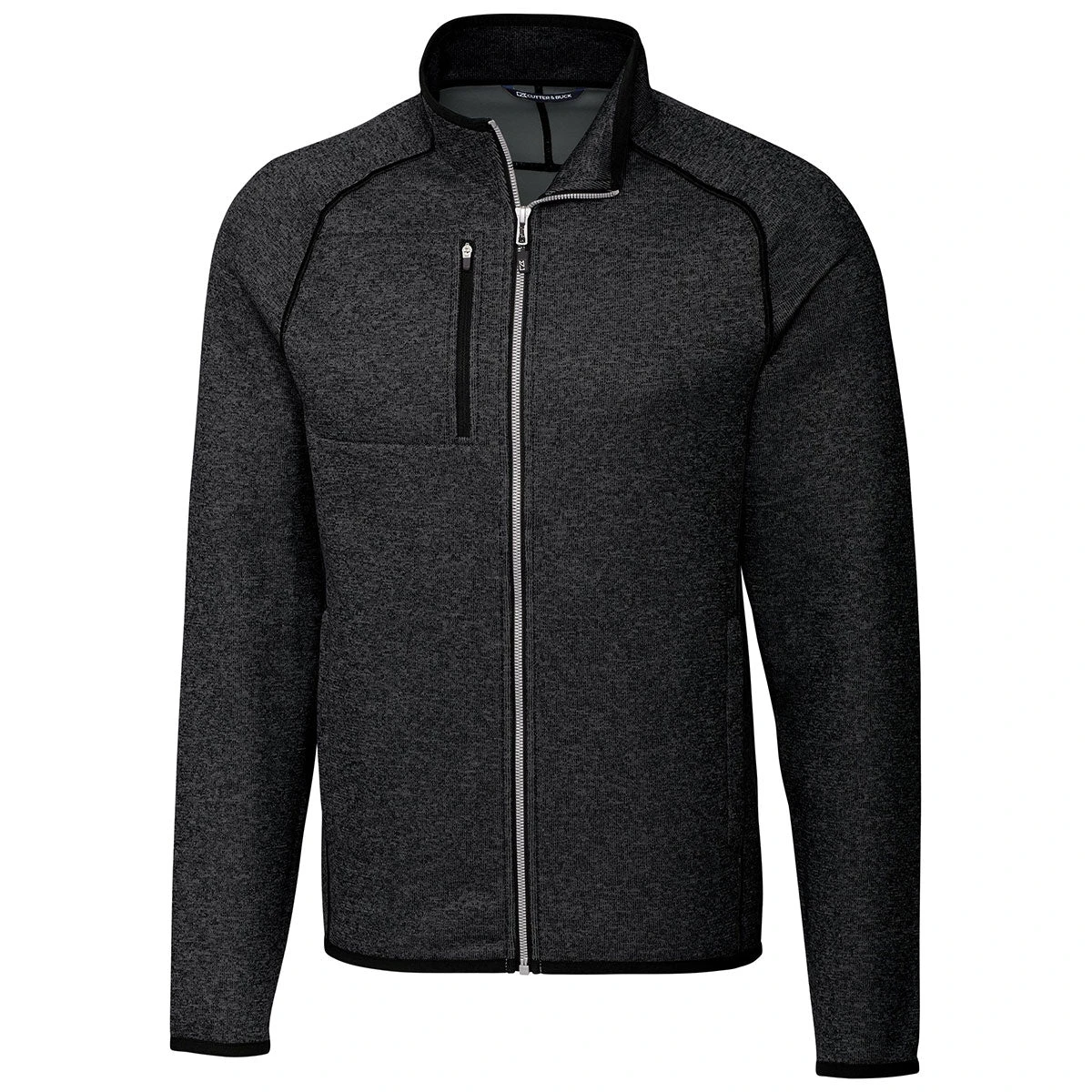 The Cutter & Buck Men’s Charcoal Heather Mainsail Jacket offers a modern style with ideal warmth. Add your custom logo to the front of the jacket and you can turn this already exceptional item into an advertising item for your company. This corporate apparel product is available in a variety of appealing colors with welcome features such as a 100% polyester material, sweater knit material, brushed fleece interior, mock neck full zip, zippered chest pocket, and CB logo at back yoke. This jacket makes an excellent employee apparel gift as well as to hand out as a giveaway gift at any upcoming corporate event.