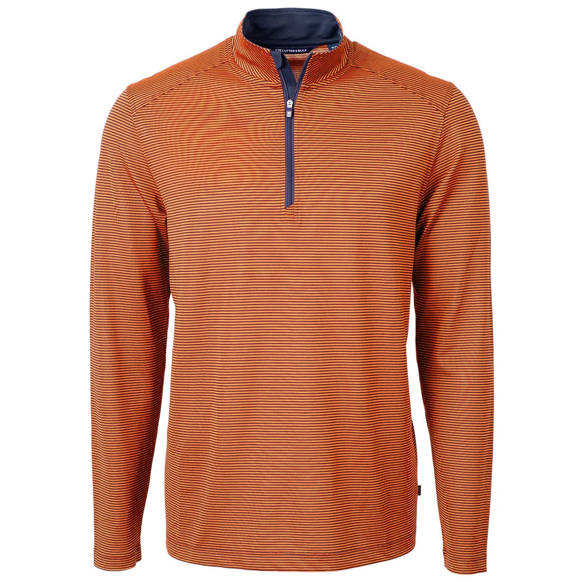 Cutter & Buck Men’s College Orange/Navy Blue Virtue Eco Pique Micro Strip Recycled Quarter Zip with an embroidered logo is a must-have for those who enjoy the great outdoors. The sleek, long-sleeve quarter zip has a zippered closure that is easy to layer on those chilly days. Ideal for walking a dog or enjoying a weekend hike, this versatile quarter zip is ready for adventure. Place an order today.