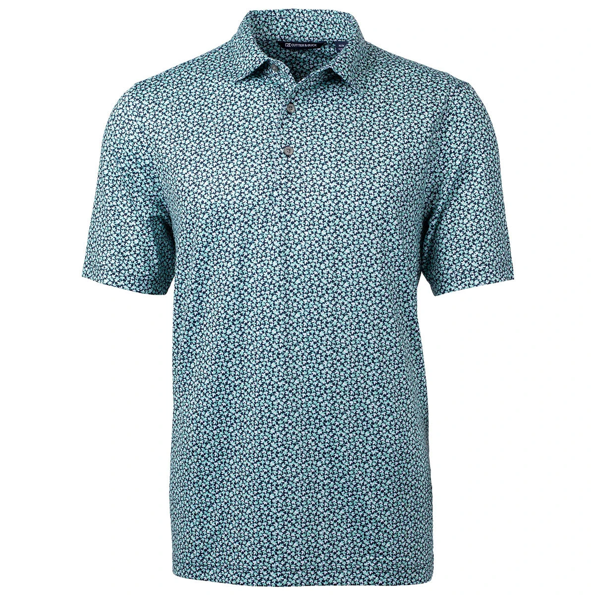 Get noticed in the Cutter & Buck Men’s Fresh Mint/Navy Blue Pike Magnolia Print Stretch Polo with an embroidered logo. This bold printed polo combines polyester and spandex for stretch and comfort all day. Ideal for the driving range or practicing your putt in the hot sun, the polo has moisture-wicking, 50+ UV sun protection, and is machine washable. Add a custom logo to add this print to your custom line. Place an order right away.