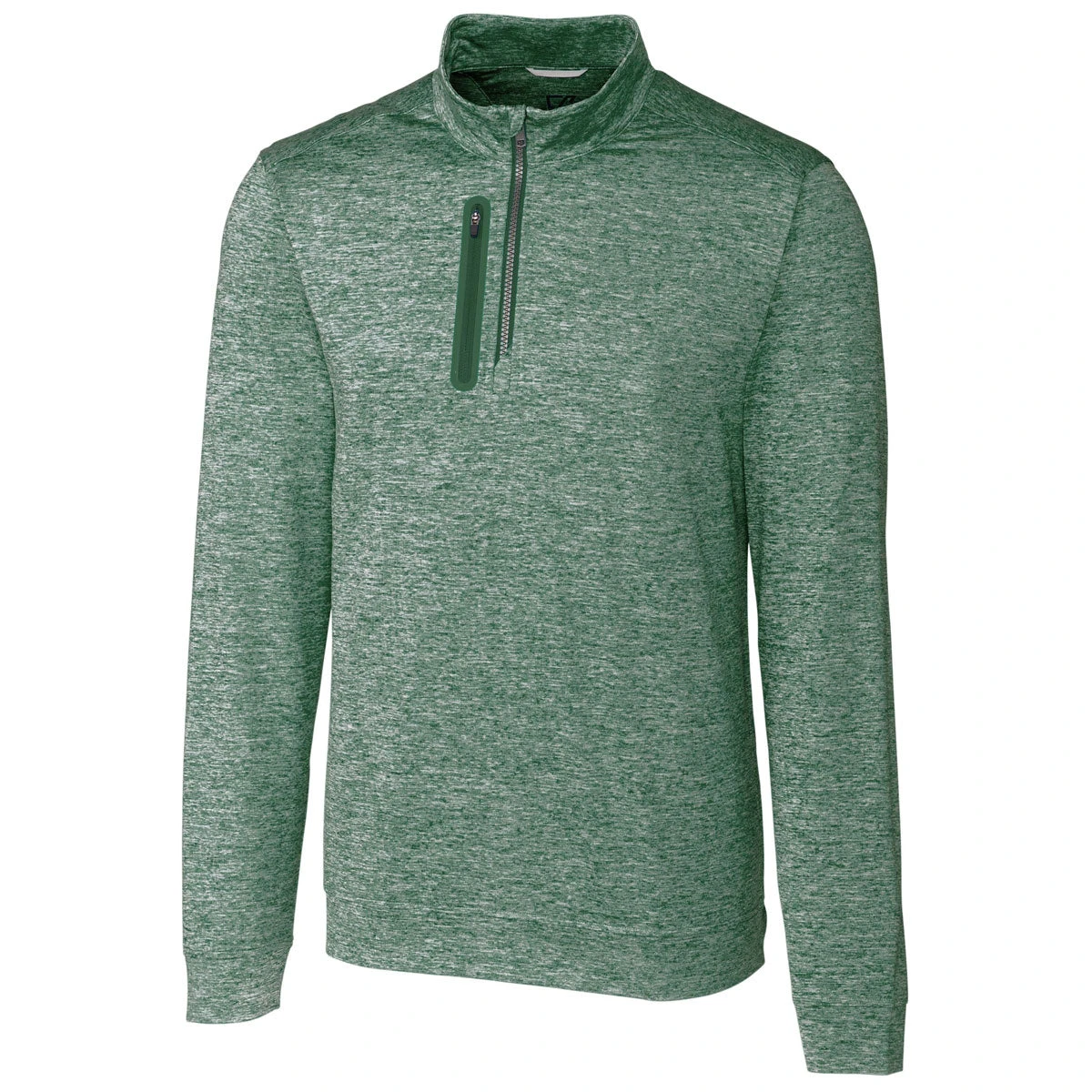 Cutter & Buck Men’s Hunter Green Stealth Heathered Quarter Zip Pullover with a custom logo will be an instant favorite at work, home, and beyond. The pullover offers 50+ UV protection, moisture wicking, and stretch meaning it is perfect for travel, working out, golf, tennis, and much more. Layer with a polo or dress shirt to wear to the office and remain comfortable. Place an order today.