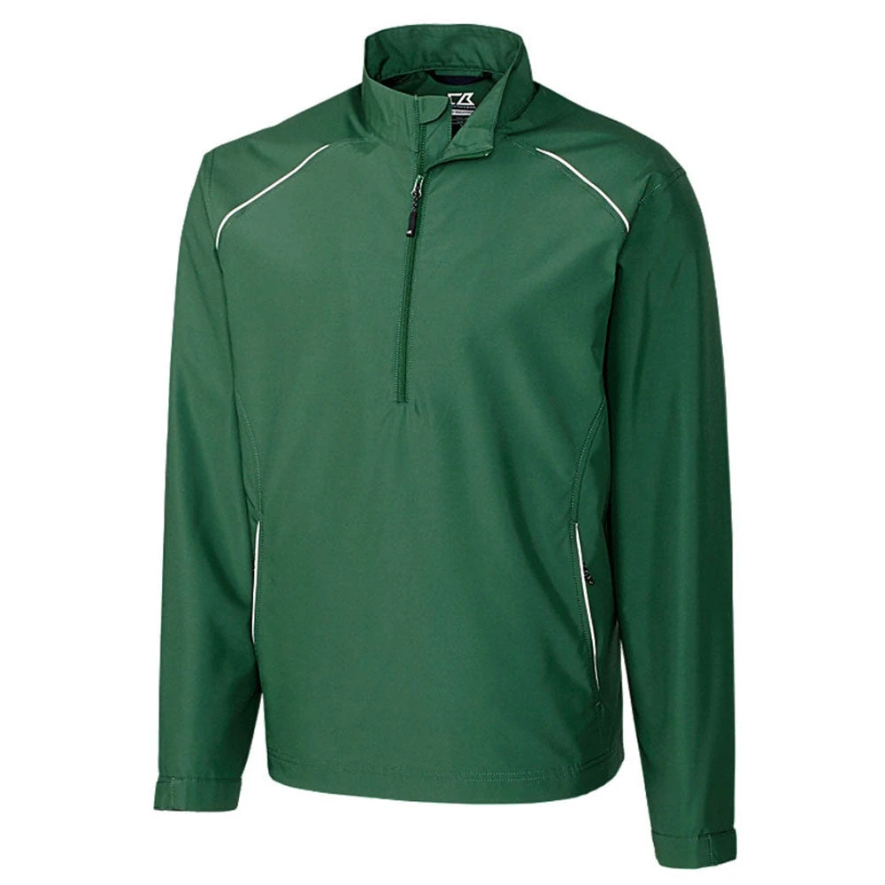 With the addition of your custom logo, the Cutter & Buck Men’s Hunter Tall WeatherTec Beacon Half-Zip Jacket includes everything you need for an outfit to wear at corporate athletic events. The cuffs on the sleeves can be tightened or loosened by a small bit for the wearer’s liking. The half-zip front allows for air to move in when the wearer needs it. The zippered pocketed on the sides include nice off-color accents while adding enough room for the wearer to keep one’s hands comfortable. These and many other features, including an outstanding mock neck collar, make this a must for your next employee outing or other corporate event.