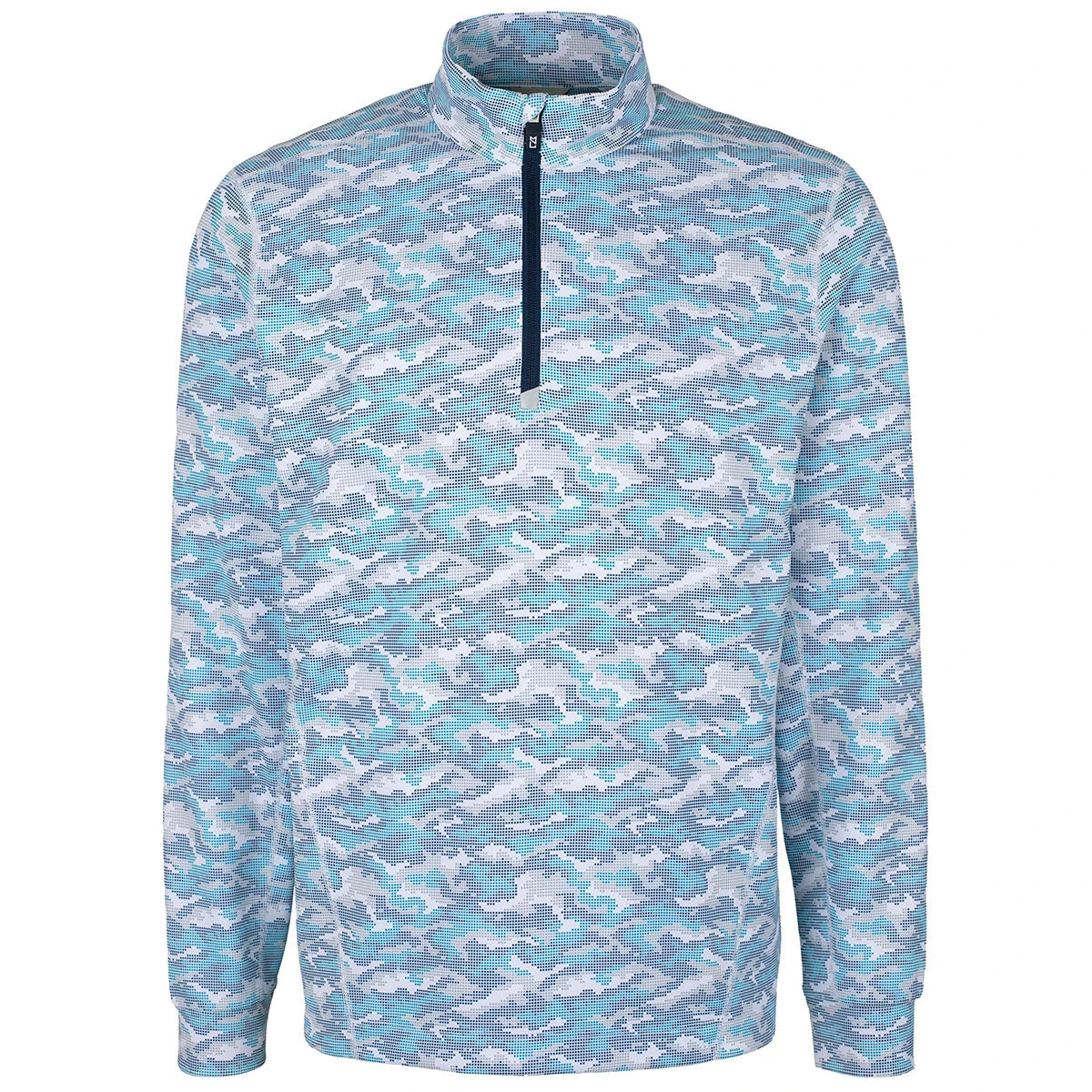 The Cutter & Buck Men’s Indigo Traverse Camo Print Half Zip shirt is style and comfort at its best. Add your company logo in embroidery and hand this long-sleeve shirt out to employees at the office or potential clients at upcoming trade shows. Features you’ll find with the Traverse Camo Print shirt include a 90% polyester/10% spandex material, CB DryTec UPF 50+ sun protection, mock neck half zip style, and straight hem. The back of the shirt features the CB logo in silver.