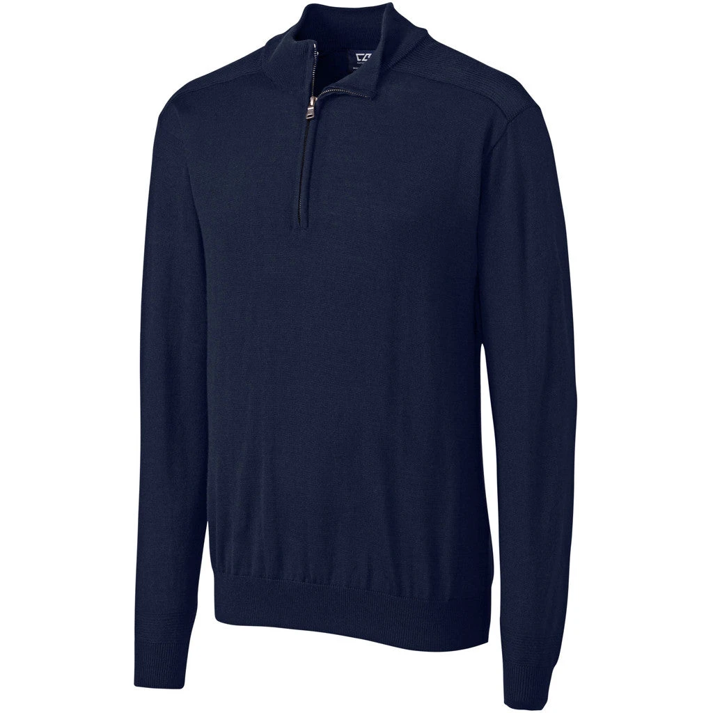 There’s nothing quite like a half zip to ensure that you have a shirt representing the best of all worlds: comfort, durability, and quality. But this Cutter & Buck Men’s Liberty Navy Long Sleeve Douglas Half Zip Mock isn’t just a nice half zip. The fabric helps see to that. That means it’s highly functional in its insulation but also more comfortable than you would expect out of something so darn useful. Add your unique company logo to this half zip mock and enjoy a quality piece-or use it for corporate gifting, event promotion, and more.