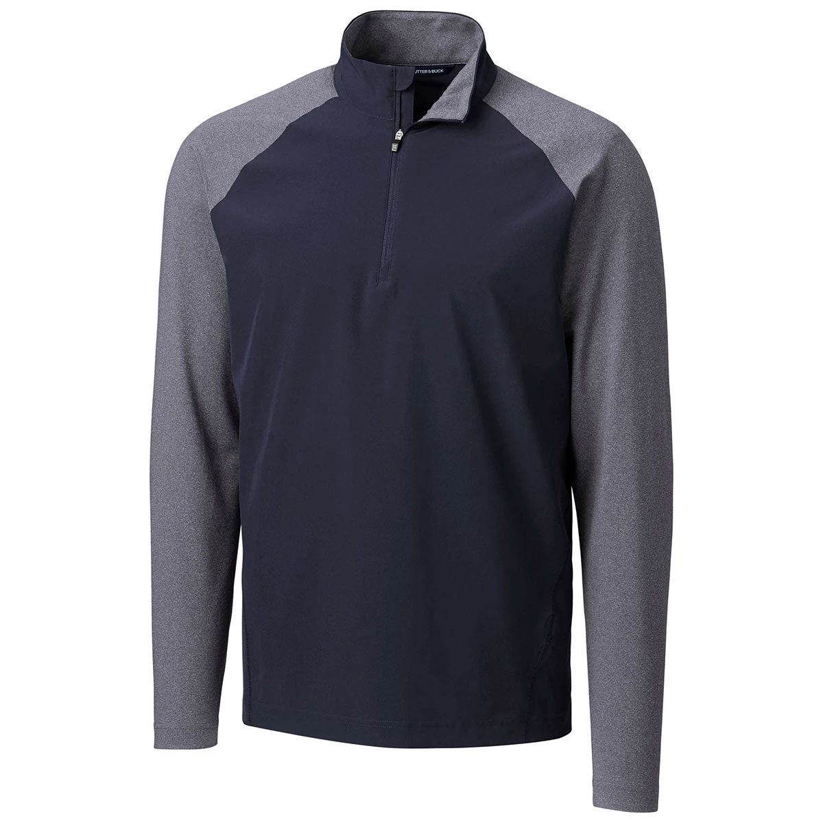 The Cutter & Buck Men’s Liberty Navy Response Hybrid Overknit shirt offers cool comfort in a stylish long-sleeve shirt. This shirt is available in seven classic colors, all of which will look fantastic with your company’s embroidery logo on it. Some of the features of this men’s shirt include 87% polyester/13% spandex blend fabric, moisture wicking capabilities, CB DryTec UPF 50+ material, plain weave texture, mock neck half zip style, raglan armholes, and straight hem. Purchase this shirt in various colors, add your company logo, and hand it out as corporate apparel.