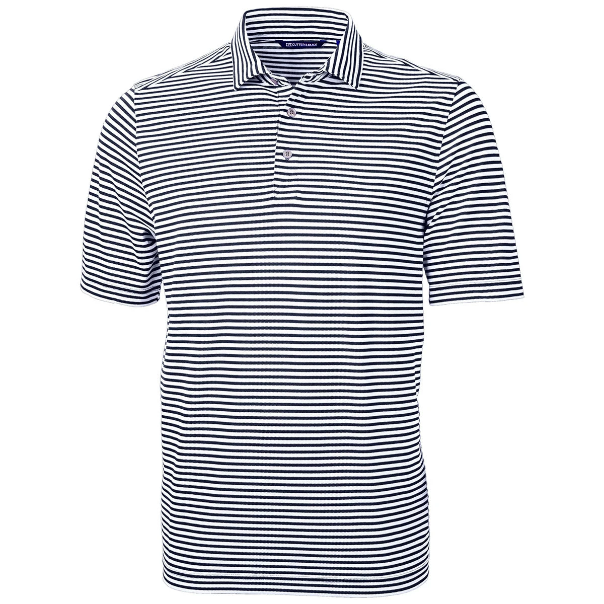 Have fun in a custom logoed Cutter & Buck Men’s Navy Blue Virtue Eco Pique Stripped Recycled Tall Polo with embroidery of your design. The micro stripes offer a fun and unique look that can easily go from lunch with friends to the tennis court and beyond. Dress this sustainable polo up or down to fit your needs, now available in extended sizes. Order yours today.