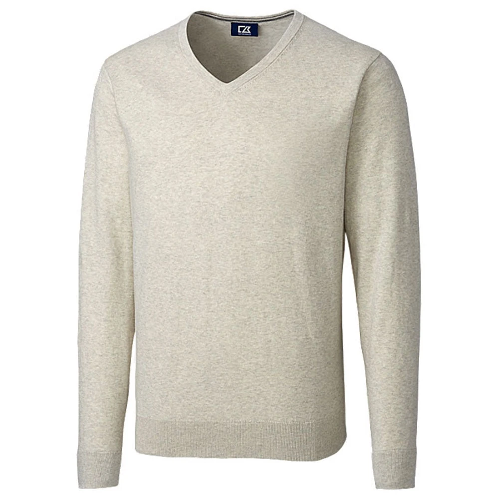 Enjoy the classic surface of the Cutter & Buck Men’s Oatmeal Heather Tall Lakemont V-Neck. This V-neck is the perfect canvas for your company’s custom branding. The outfit is good for casual work wear needs and offers a friendly face during a charity or recruiting event. The flexible cotton and nylon surface with a hint of spandex provides the comfort your employees need for a long day of work. The soft surface on this outfit adds a good style with a flexible body that is not hard to wear or use. Try this when looking for something fashionable to give to employees during the fall or winter seasons.