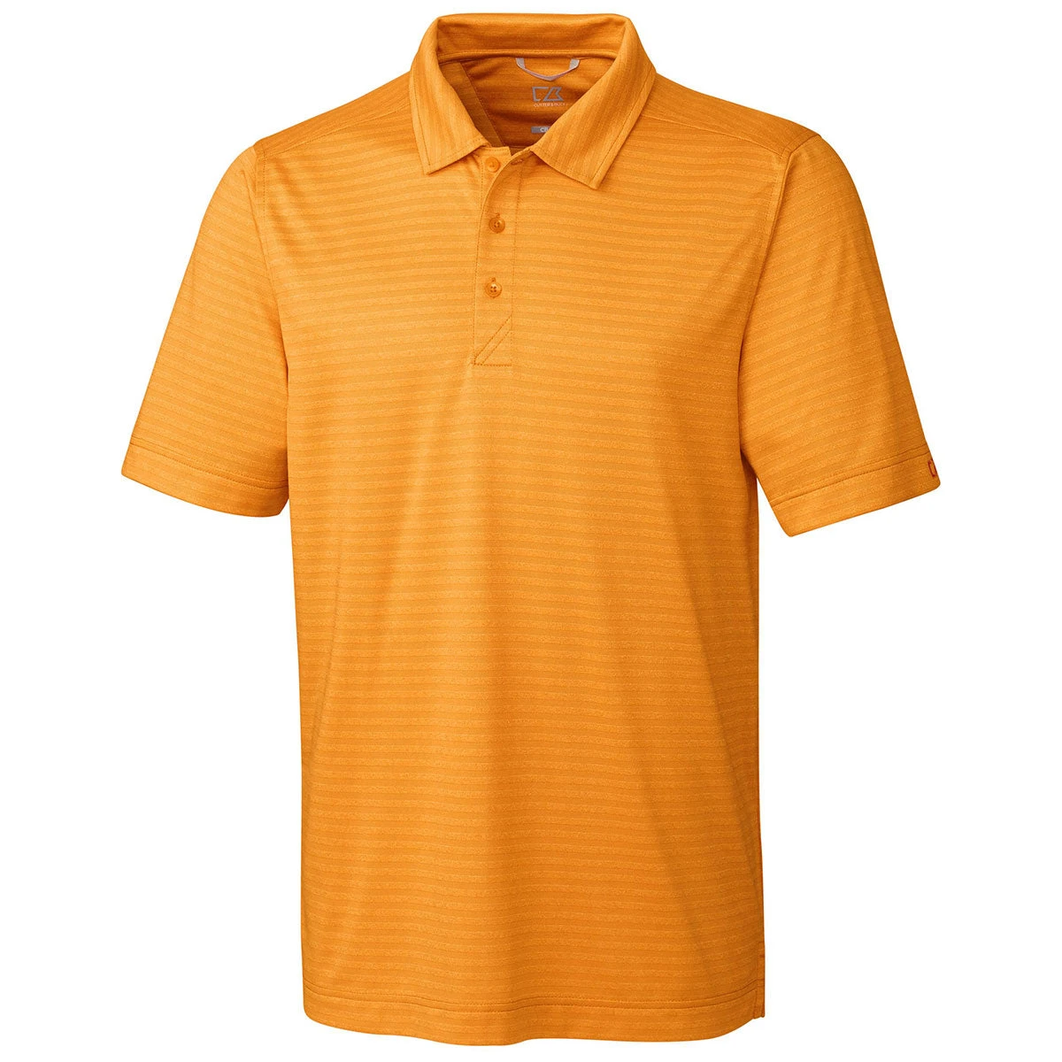 With the Cutter & Buck Men’s Orange Burst Heather Cascade Melange Stripe Polo shirt, classic comfort and modern style are all rolled into one must-have shirt. This shirt is even better with your embroidery logo added to it. Choose from almost a dozen different colors and purchase this corporate apparel item for your team or to hand out as company gifts. The features of this shirt include a 100% polyester fabric, moisture wicking capabilities, melange textured stripes, self-fabric collar, three-button placket with diagonal stitch, and Cutter & Buck logo on left sleeve hem.