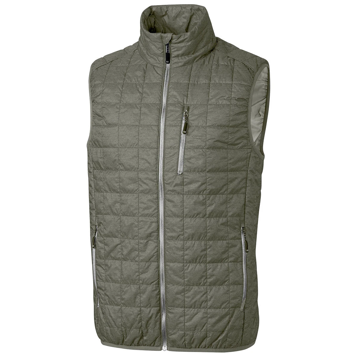 Quilted vests are in, and when you put your custom logo on this Cutter & Buck Men’s Poplar Melange Rainier Vest, everyone will know you are a company that keeps up with the times. It is insulted and made from easy-care taffeta. It has a mock turtle neck, full zipper front and front pockets with zippers. The wind will be kept at bay with the elastic bound armholes and hem. For your embroidered logo there is zip in lining for embroidery access. There is Primaloft fill that is packable into the left front pocket. This vest is machine washable in cold water on the delicate cycle.