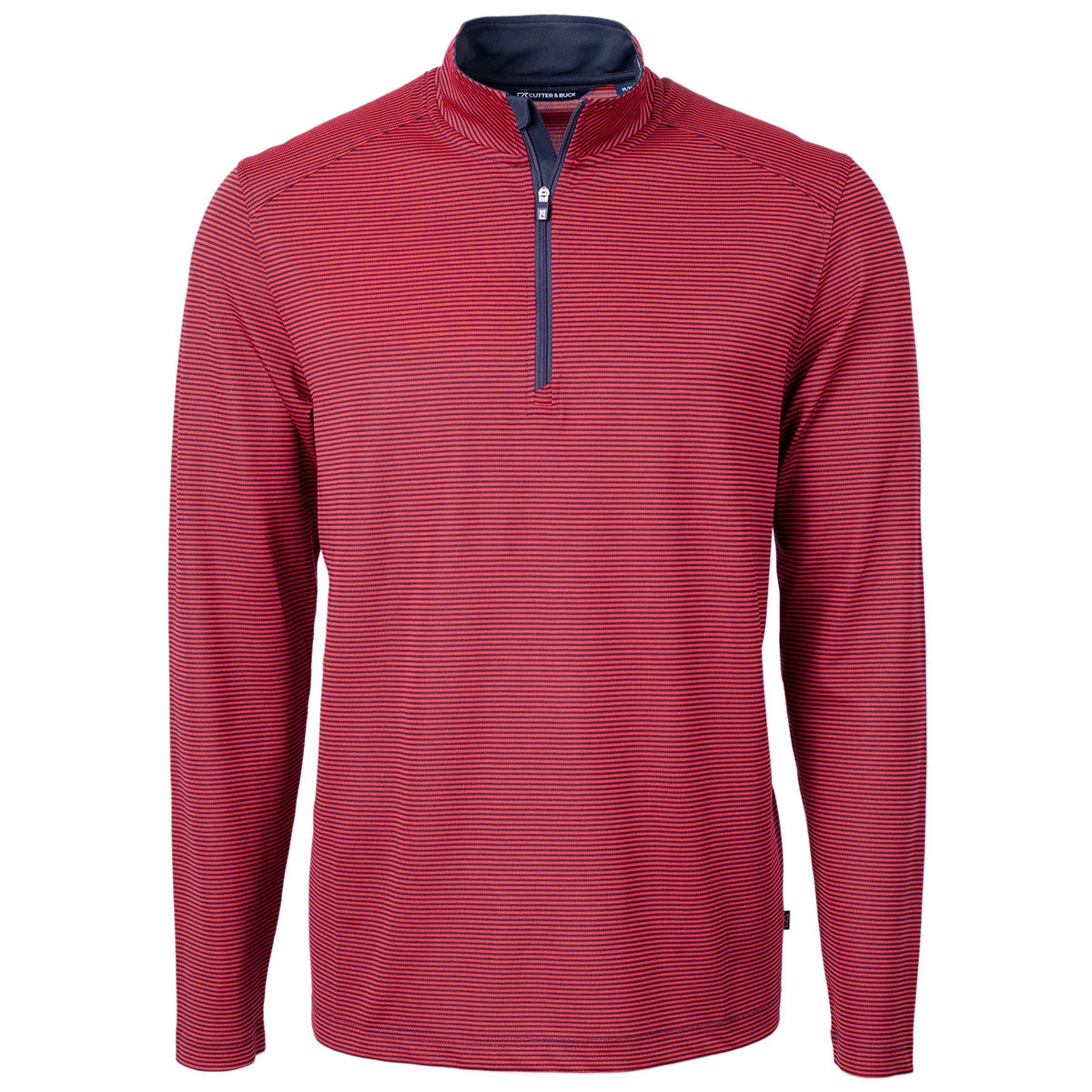 Cutter & Buck Men’s Red/Navy Blue Virtue Eco Pique Micro Strip Recycled Quarter Zip with an embroidered logo is a must-have for those who enjoy the great outdoors. The sleek, long-sleeve quarter zip has a zippered closure that is easy to layer on those chilly days. Ideal for walking a dog or enjoying a weekend hike, this versatile quarter zip is ready for adventure. Place an order today.