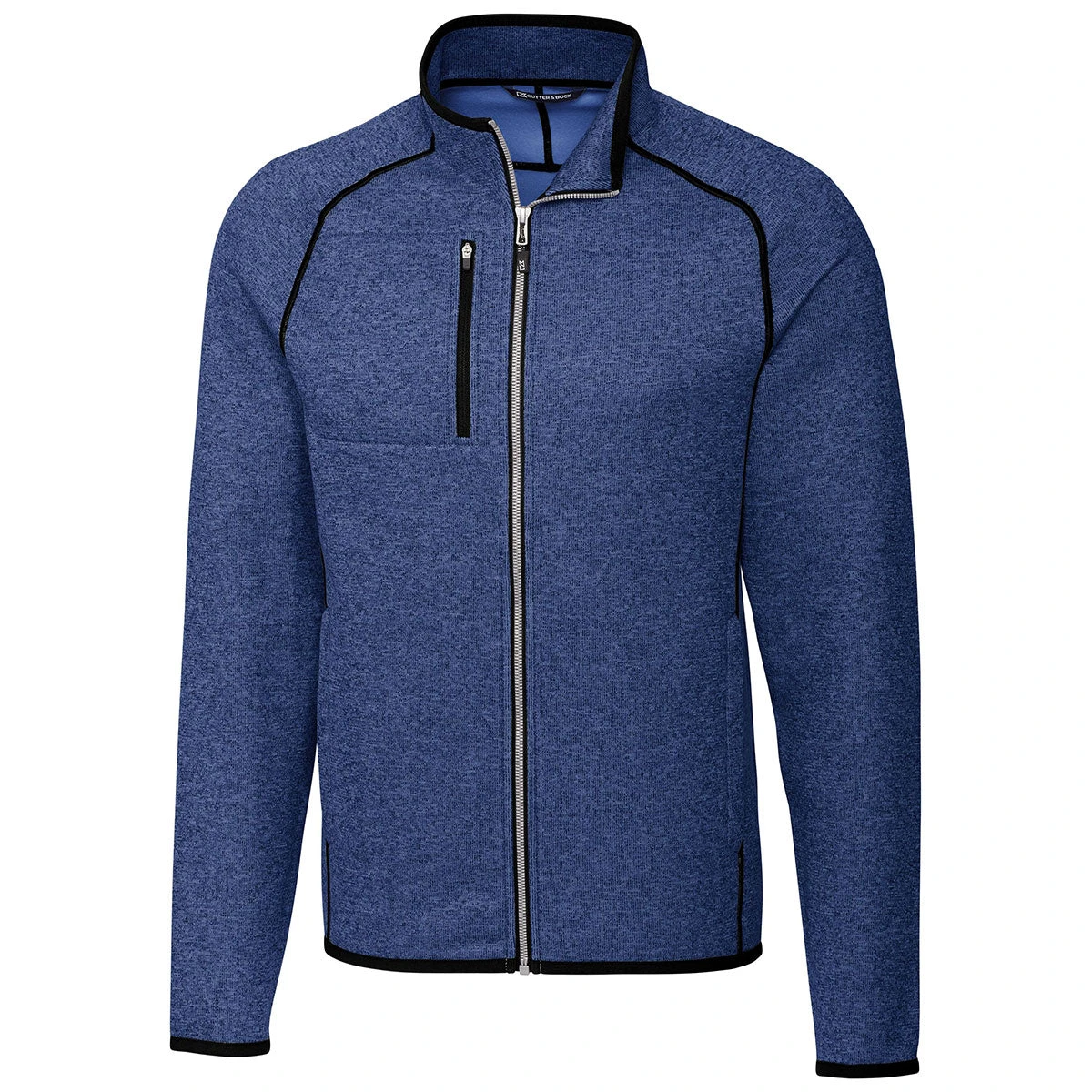 The Cutter & Buck Men’s Tour Blue Heather Mainsail Jacket offers a modern style with ideal warmth. Add your custom logo to the front of the jacket and you can turn this already exceptional item into an advertising item for your company. This corporate apparel product is available in a variety of appealing colors with welcome features such as a 100% polyester material, sweater knit material, brushed fleece interior, mock neck full zip, zippered chest pocket, and CB logo at back yoke. This jacket makes an excellent employee apparel gift as well as to hand out as a giveaway gift at any upcoming corporate event.