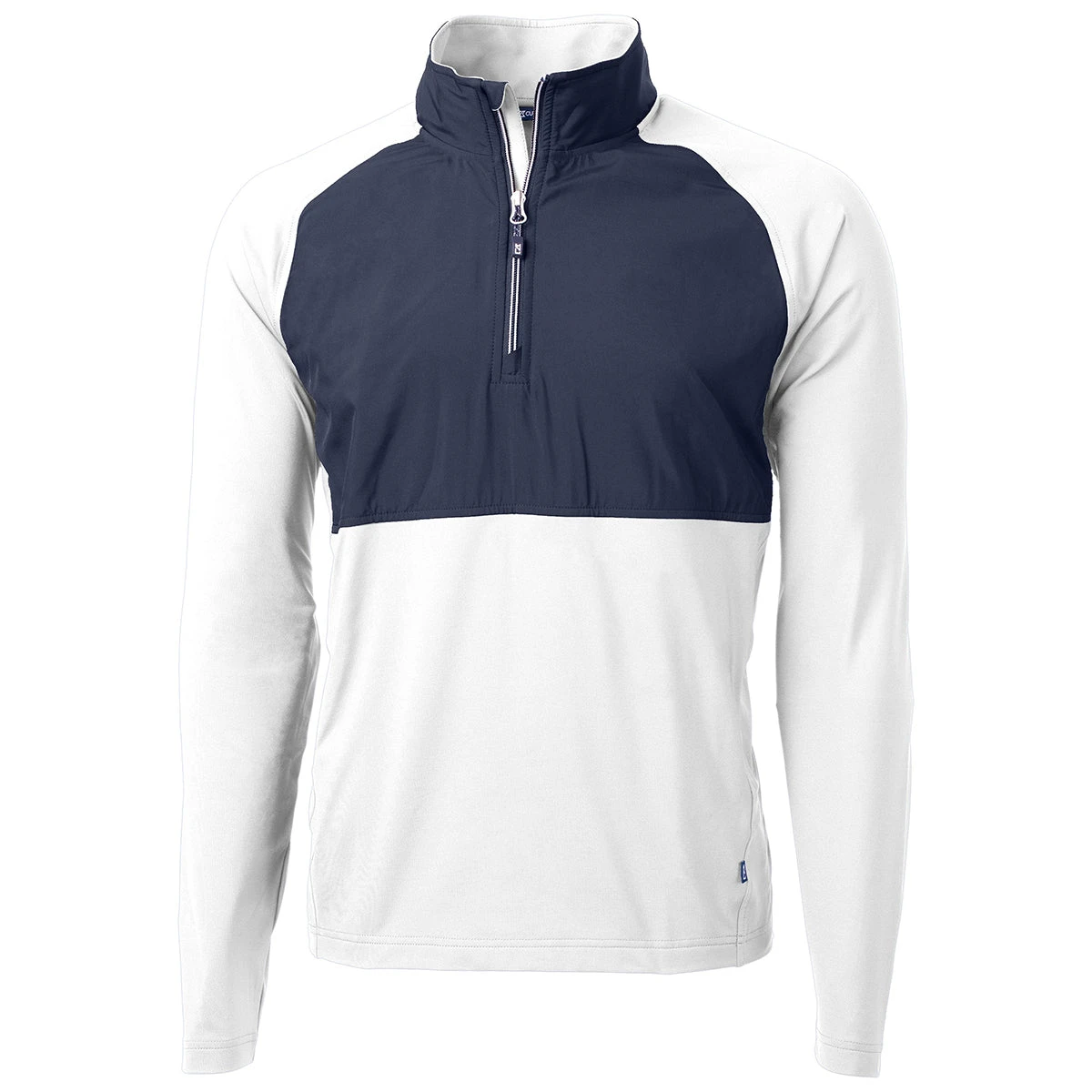 Choose a custom logo for the Cutter & Buck Men’s White/Navy Blue Adapt Eco Knit Hybrid Recycled Quarter Zip for a look that helps you stay active. The versatility of this quarter zip is ready for your active lifestyle whether enjoying tennis, travel, golf, or something else. Embroidery will pop as you enjoy the wind resistant, lightweight warmth that is ready for cooler weather. Place an order today.