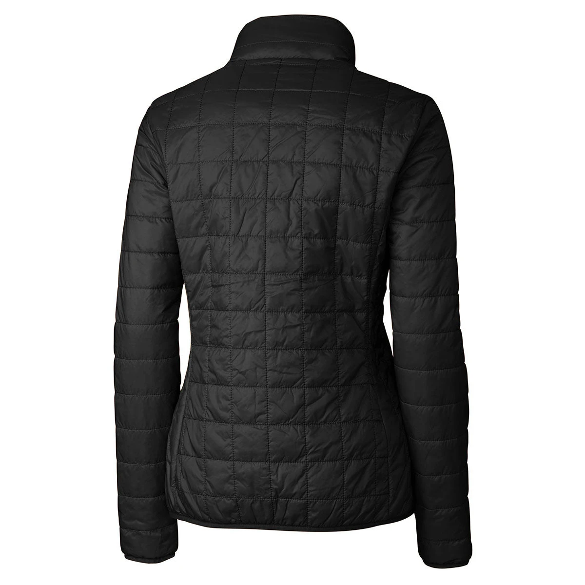 For a ladies’ long sleeve jacket that is rated from zero to 50, the Cutter & Buck Women’s Black Rainier Jacket is a great option, especially because your company’s logo can be embroidered on it. It is insulted and made from easy-care taffeta. It has a mock turtle neck, full zipper front and front pockets with zippers. It is fully lined with a concealed hood and elastic bound cuffs. For your embroidered logo there is zip in lining for embroidery access. There is Primaloft fill that is packable into the left front pocket. This vest is machine washable in cold water on the delicate cycle.