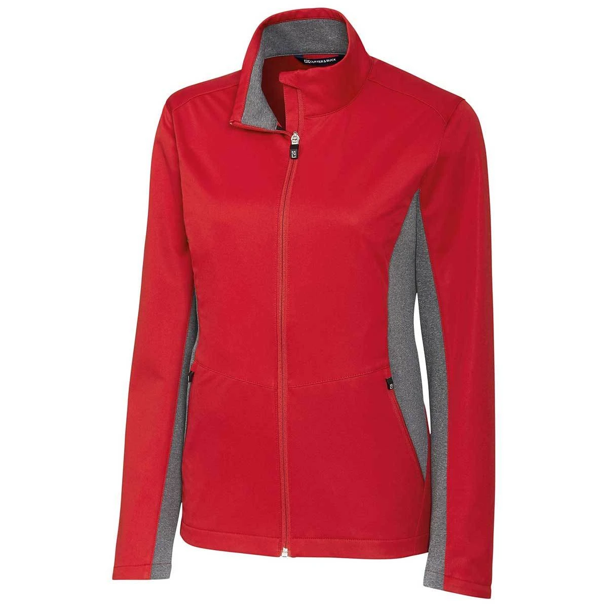The Cutter & Buck Women’s Cardinal Red Navigate Softshell is a luxurious layering piece that is perfect for almost any situation. Sporty and stylish, it is the perfect blank canvas for your company or team’s custom logo or design. Made of a wind and water-resistant fabric, it features a variety of thoughtfully designed details including zippered hand pockets and reflective accents at the shoulders. It also features stretch melange jersey panels at sides and underarms for added comfort. Lightweight and totally on-trend, the ladies on your team will look cool and cohesive when outfitted in this fantastic full-zip.