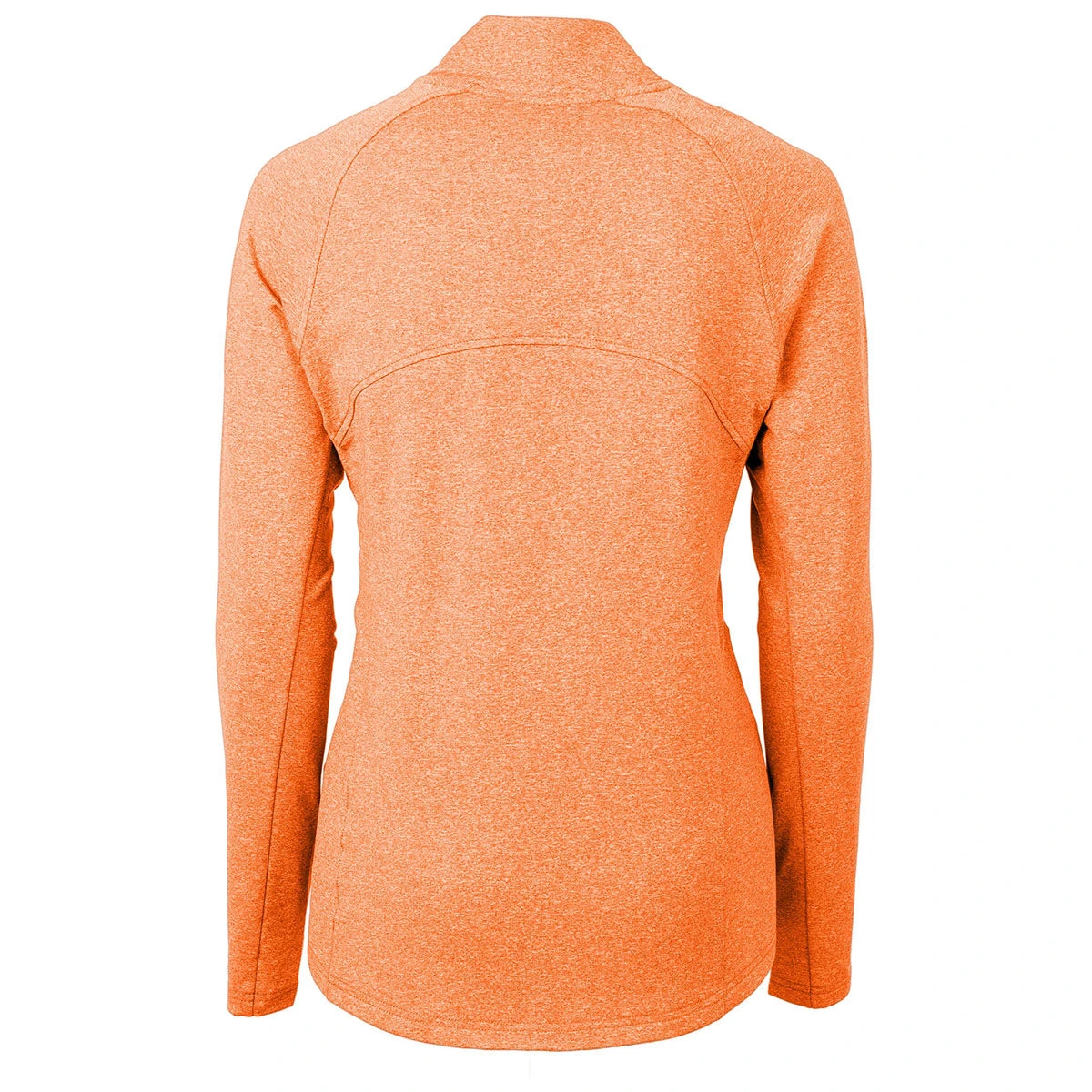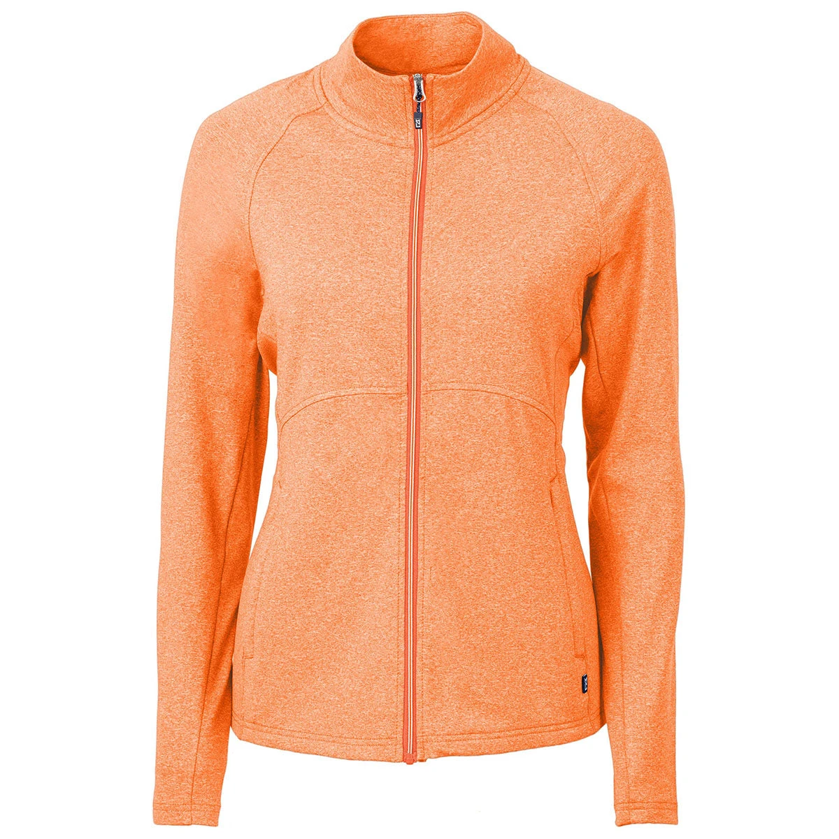 Design custom embroidery for the Cutter & Buck Women’s College Orange Heather Adapt Eco Knit Heather Recycled Full Zip for a fashion-forward look with a purpose. The soft look of the eco-friendly jacket is machine washable making it perfect for working out. Add a gym logo to the full zip and include this jacket in your custom apparel line. Place an order today.