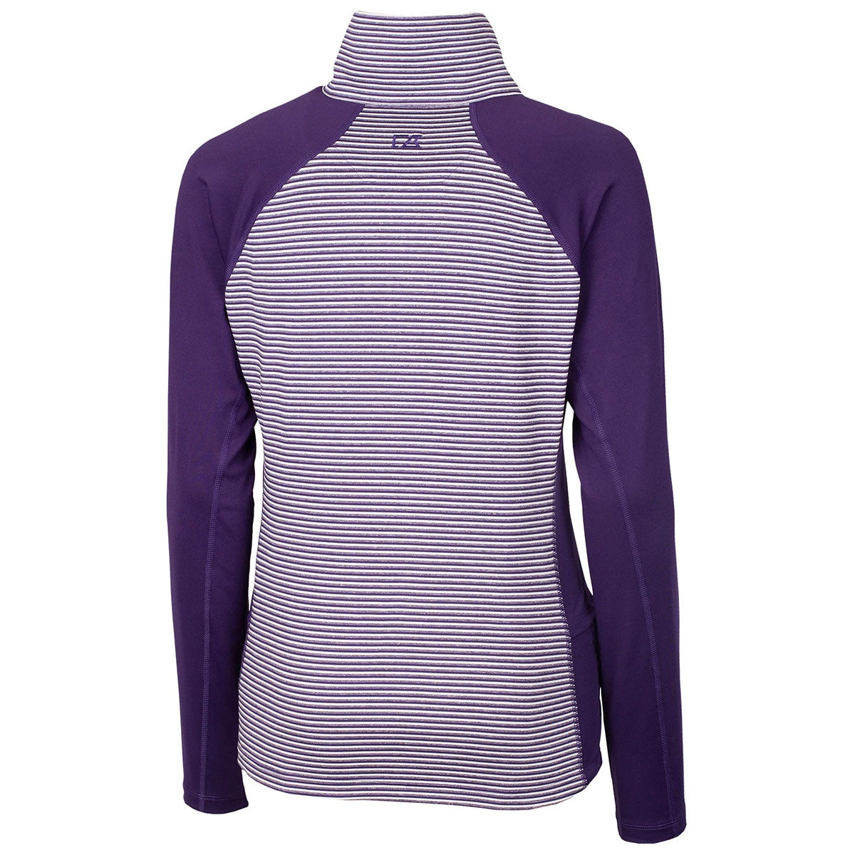 The Cutter & Buck Women’s College Purple Forge Tonal Stripe Half Zip shirt offers eye-catching style and comfort in one. Choose from a variety of vibrant colors and add your company logo to this shirt that’s sure to be a fan favorite in the office. Attractive features include a 96% polyester/4% spandex material with CB DryTec UPF 50+ protection, moisture wicking capabilities, tonal color heather stripe style, exposed half zip placket, and solid color block sleeves. Order this item in bulk and hand it out to your loyal employees as a corporate apparel item that’s sure to be appreciated.