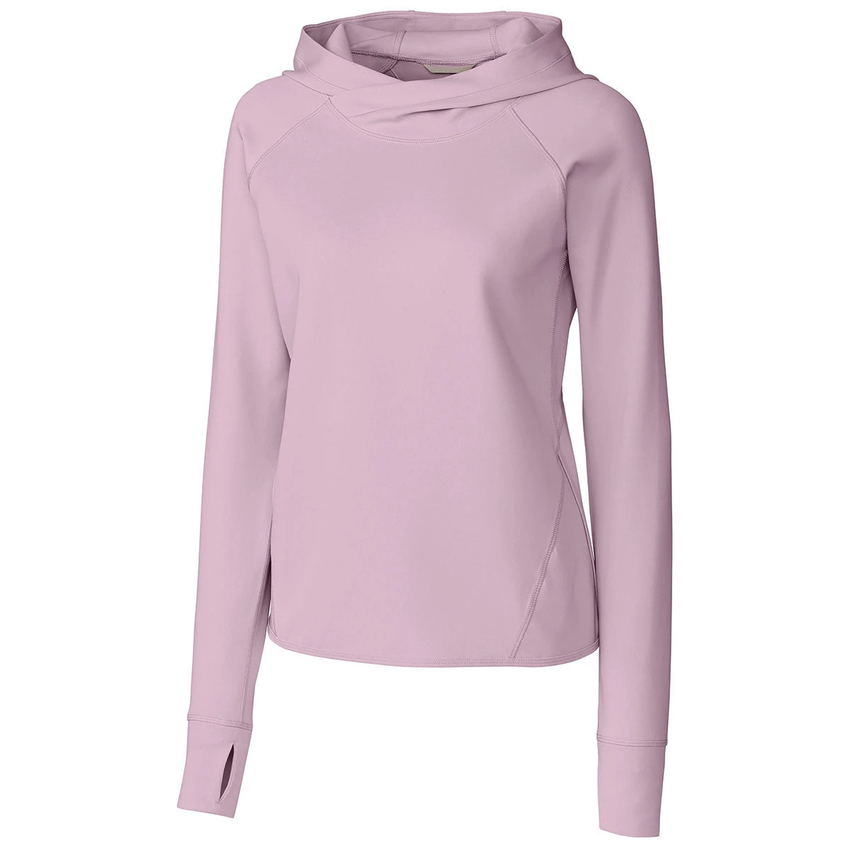 The Cutter & Buck Women’s Iced Orchid Traverse Sweatshirt Hoodieis a comfortable shirt that will suit your screen print company logo perfectly. Available in a variety of lovely colors, this hoodie offers optimal comfort in an attractive long-sleeve sweatshirt. Features of the ladies hoodie include a 90% polyester/10% spandex material, stretch fabric material, thumbholes in the cuffs, CB DryTec UPF 50+ sun protection, front and back seam style, curved drop-tail hem, and CB logo on the back yoke. This hoodie makes an excellent corporate apparel option for your loyal employees or to hand out at upcoming trade shows.