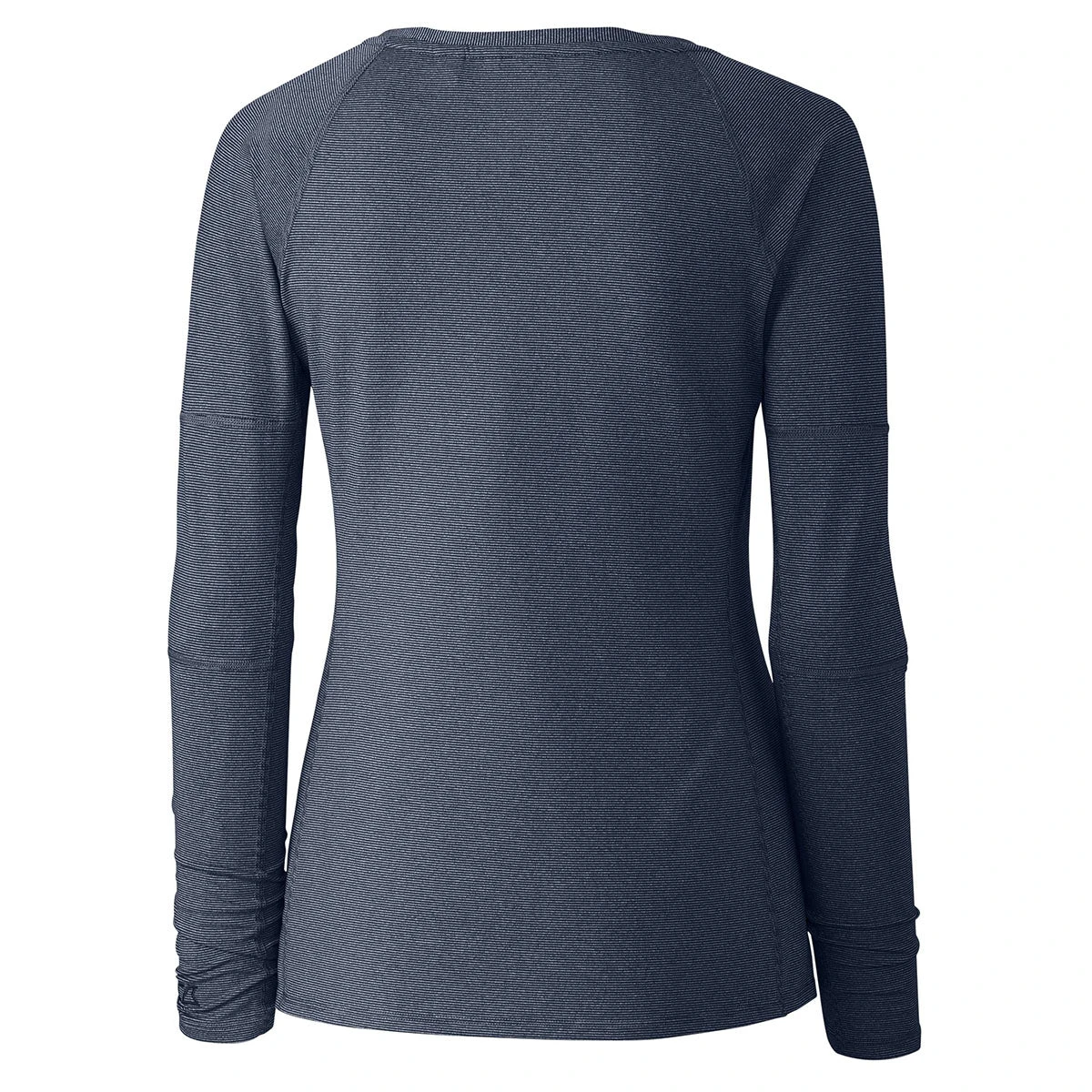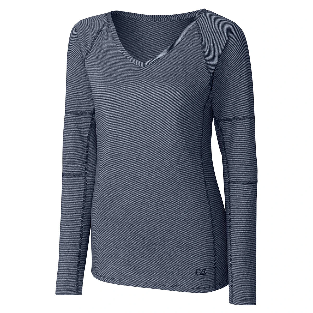 You will claim victory when you give this lovely Cutter & Buck Women’s Liberty Navy DryTec Long Sleeve Victory V-Neck top carrying your unique company logo. It can be carried in a pro shop, company store or used as an incentive or other giveaway. The recipients will be very pleased with the gift. This top is made of polyester with a touch of spandex. The material is important for two reasons. First, it is the proprietary CB DryTec fabric which is famous for its wicking properties. Moisture is kept away from the skin. The spandex gives this top a bit more form fitting. Yet when it stretches as the wearer does, it retains its original shape. There is tonal cover stitching at design lines on sleeves and front and back body.