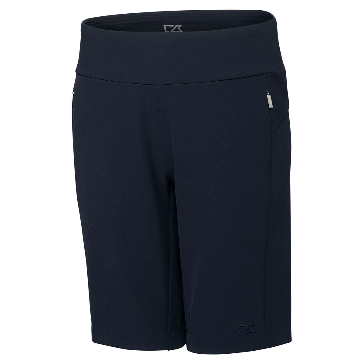 Putting your company’s logo on the Cutter & Buck Women’s Liberty Navy DryTec Pacific Pull-On Short will give the impression that you care for the comfort of the women who wear your uniform, or women customers who patronize your business. These are special because they are made of polyester and spandex. They have enough give to twist and bend without binding or pulling out of shape. They feature a pull-on waistband, front onseam invisible zipper pockets, and back piecing with onseam invisible pocket. The inseam is 10 inches. You will also see a C & B pennant at hem. It can be washed in cold water on the delicate cycle and tumble dried on low delicate.