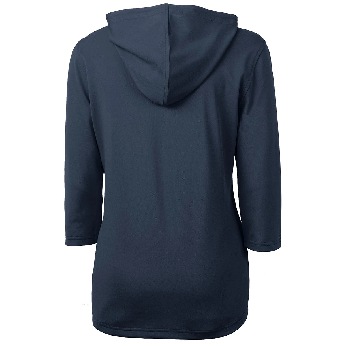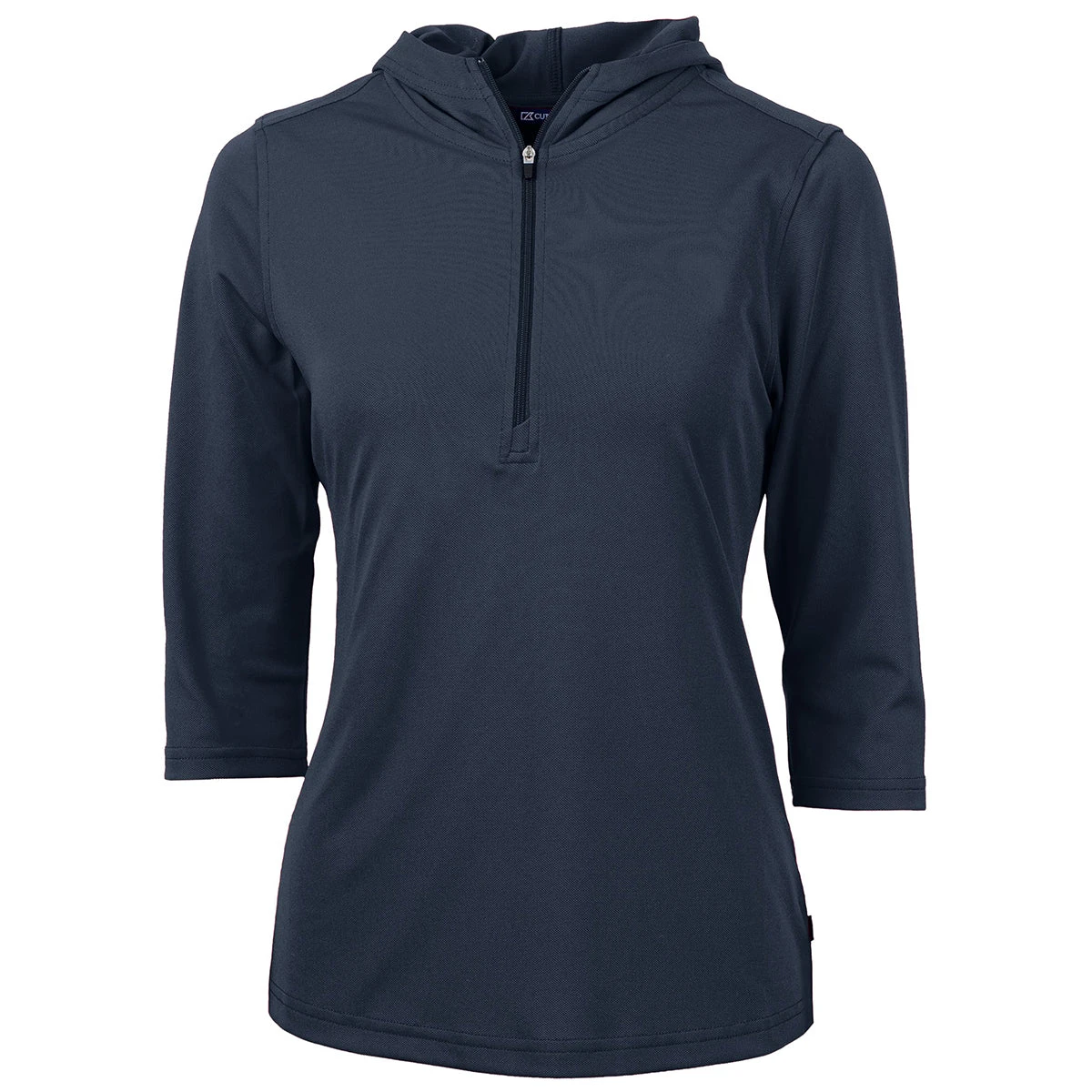 Cutter & Buck Women’s Navy Blue Virtue Eco Pique Recycled Half Zip Pullover Hoodie with embroidery will offer a custom look in a versatile style. The half zip hoodie is ultra-lightweight with 3/4 sleeves, sun protection and moisture wicking making it perfect for running, travel, work, and much more. The sleek styling is flattering and made from sustainable materials. Order today.