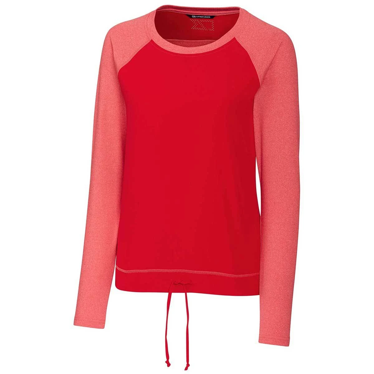 Based on classic piece of athletic apparel, the Cutter & Buck Women’s Red Response Hybrid Long Sleeve Top is a great way to set your team apart from the competition. To make your brand look extraordinary, simply add your company or team’s custom logo or design to the front of this intelligent piece of sportswear. The cool color-blocking is reminiscent of vintage baseball tees, but contemporary touches like moisture-wicking fabric, UFP protection, and a drawcord at the hem successfully bring it into the present day.