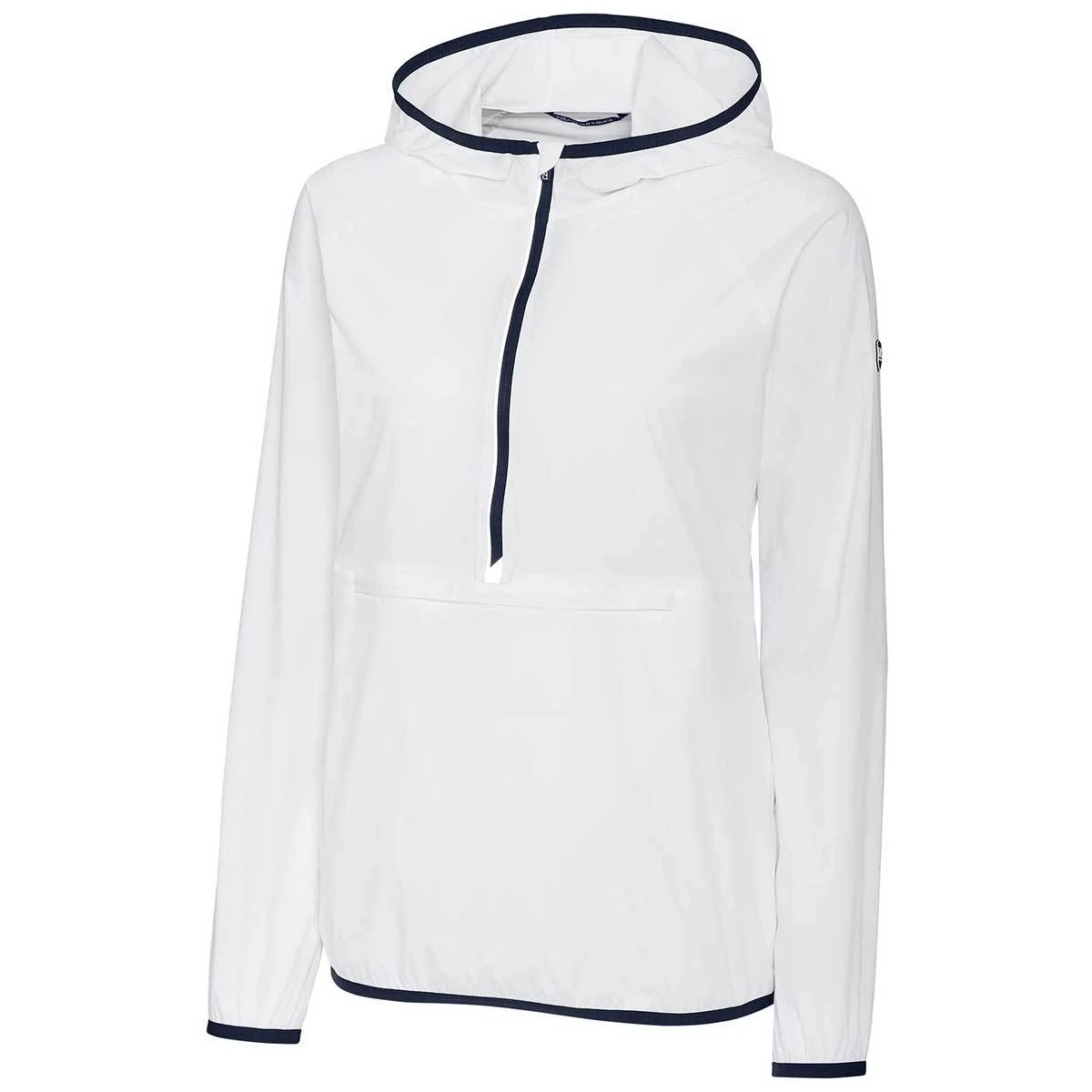 If you’re looking for a layering piece that will have your athletes or employees looking cool and cohesive, the Cutter & Buck Women’s White Breaker Half Zip Hooded Popover is what you’re after. This unique piece of athletic apparel is a great place to add your company or team’s custom logo or design. Designed for outdoor wear, this versatile pullover comes complete with an attached hood, a zip pouch pocket, and reflective accents. It’s also made of a breathable moisture-wicking fabric that offers protection against harmful UV rays. Each of the on-trend color options are also accented by contrast trim at the neckline, cuffs, and hemline.