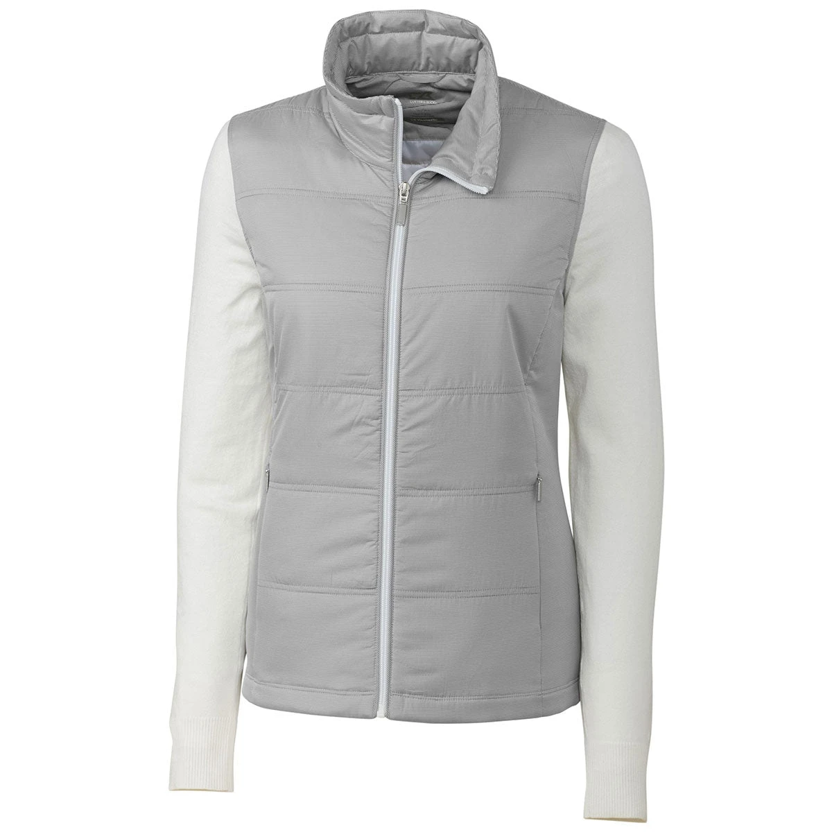 The Cutter & Buck Women’s White Cora Quilted Sweater Jacket is style and comfort rolled into one eye-catching jacket. Select your favorite color from a variety of options and add your custom logo to the front of the jacket. Some of the features you’ll find with this jacket include a stripe ripstop fabric, self-fabric mock collar, CB Weathertec material, full front zipper, and invisible zipper pockets on the seam. Purchase this lovely jacket in bulk and hand it out to your employees for a job well done.