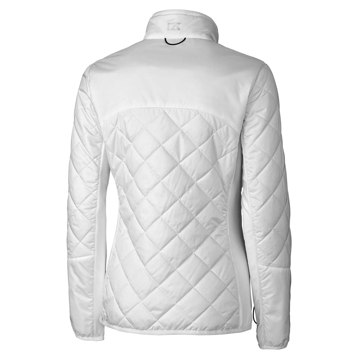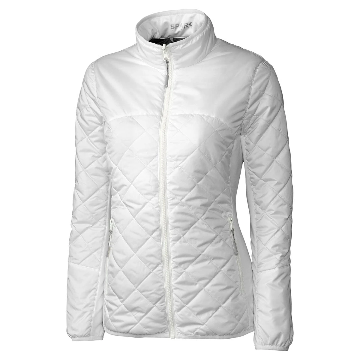 This Cutter & Buck Women’s White WeatherTec Sandpoint Quilted Jacket is a new style that will look chic and fashionable with your company’s logo on it. It has so many desired features. It is plain weave polyester with diamond quilting with knit piecing at side body and underarms. It has a mock turtleneck and a full front zipper. There is arc yoke piecing at front and back body, On-seam exposed front zipper pockets. It zips into SPARK’s program. Naturally, it is water and wind resistant. It also has a packable inside zipper pocket. This jacket is machine washable in cold water on the delicate cycle.